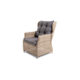 Алюминиевый каркас, круглый искусственный ротанг соломенного цвета, ручное плетение. Кресла оснащены подушками со съёмными чехлами.
