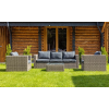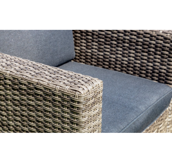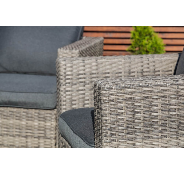 Лаунж-зона KARL серого цвета выполнена в универсальном стиле, который идеально впишется как на открытой террасе, так и под навесом или в саду. Комбинация элегантного плоского плетения серого оттенка и графитовых подушек – достойный центр вашей загородной жизни!