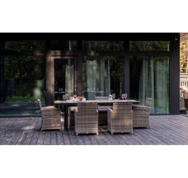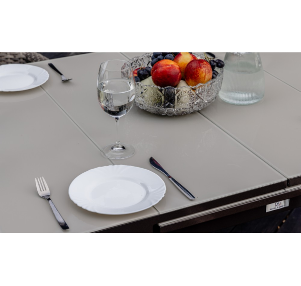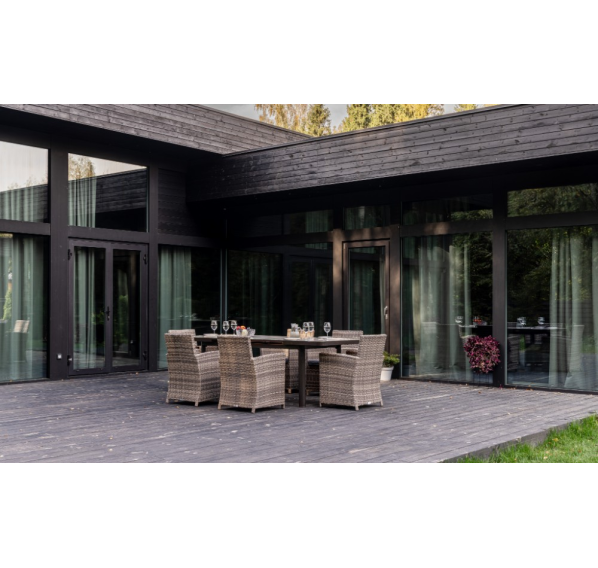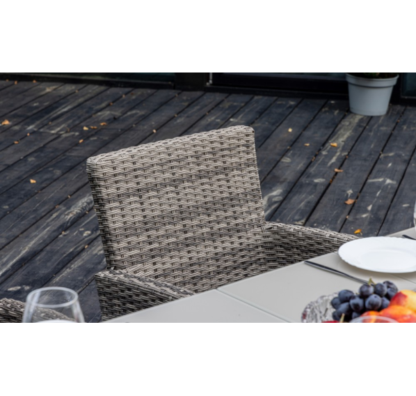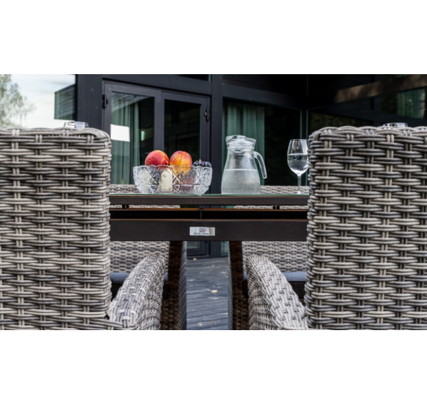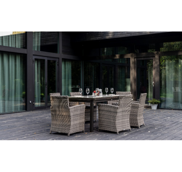 Алюминиевая конструкция столов и кресел Fiona и LUDWIG является прочной и долговечной, что делает этот набор мебели отличным выбором для использования на открытом воздухе. Кроме того, алюминиевые элементы легко чистятся и не требуют особого ухода.