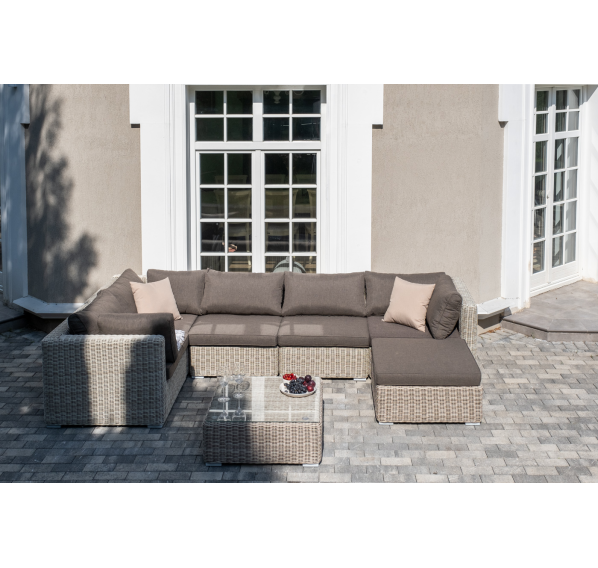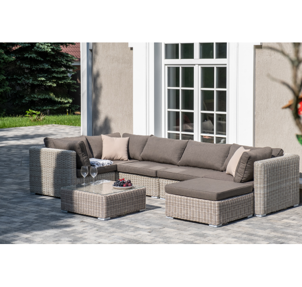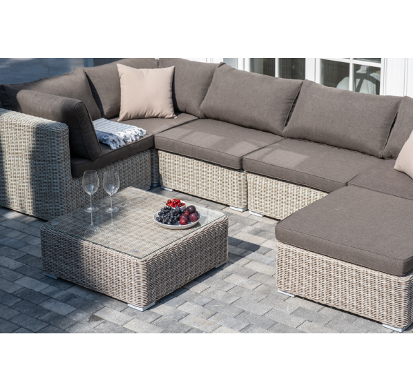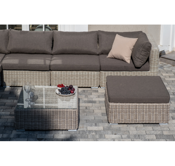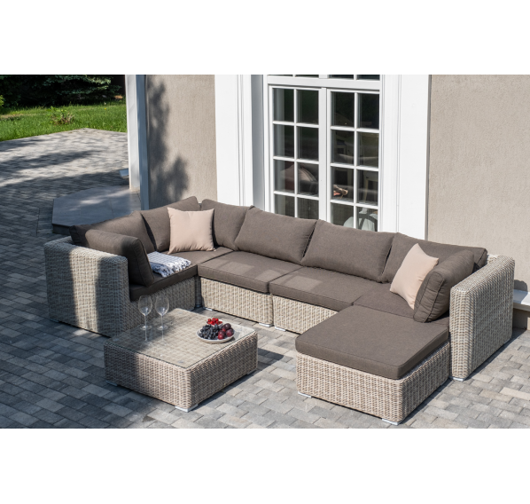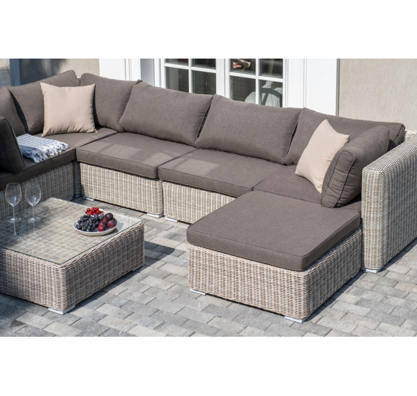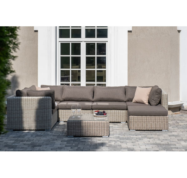 Лаунж-зона из искусственного ротанга бежевого цвета «Лунго» производит невероятное впечатление и окунает в мир уюта, благодаря продуманному и лаконичному дизайну.