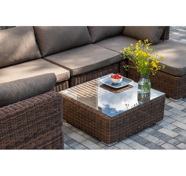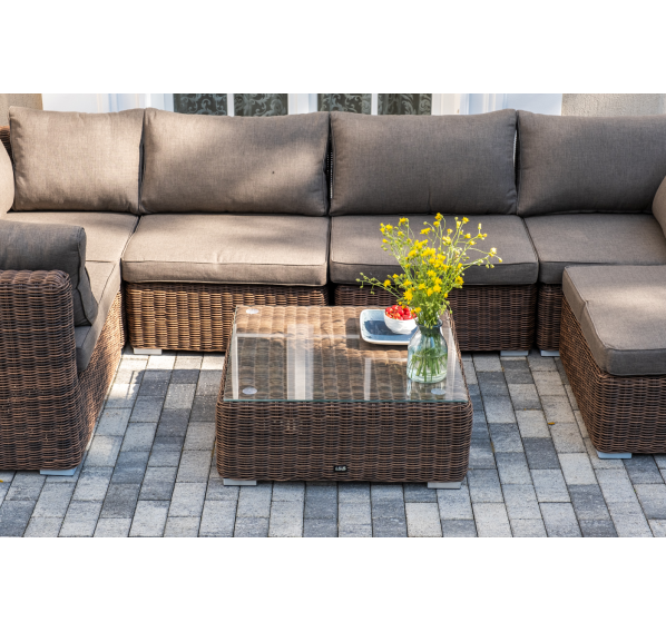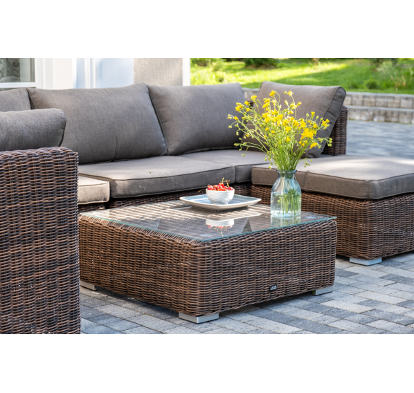 Плетеный столик имеет стеклянную столешницу, изготовленную из прочного закаленного стекла, толщина - 5 мм.