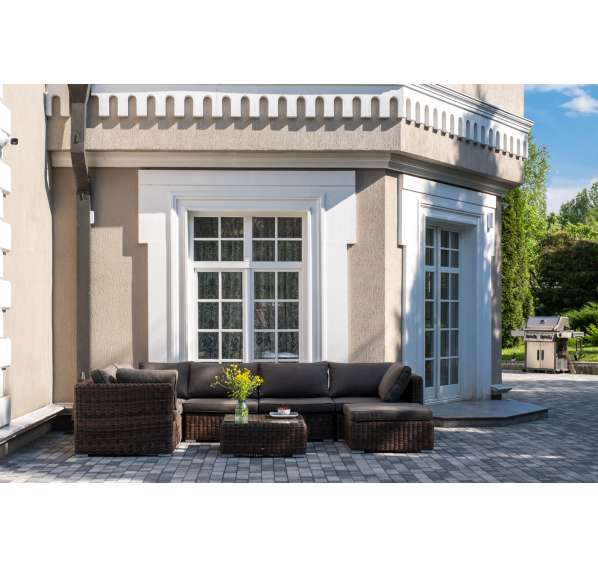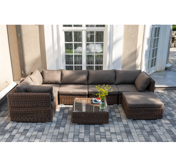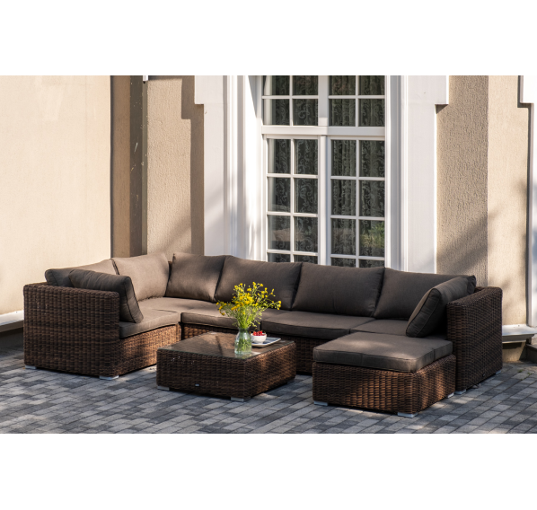 Составная и легко трансформирующаяся лаунж-зона «Лунго» гармонично дополнит зону отдыха на частной территории.
