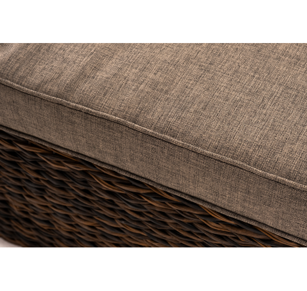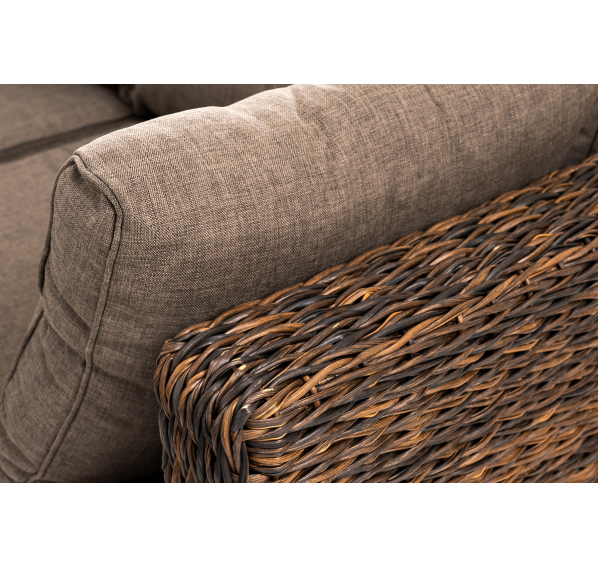 Облегченный алюминиевый каркас, вручную оплетенный искусственным ротангом натурального коричневого оттенка вида "гиацинт". Журнальный столик с прочной стеклянной столешницей толщиной 5 мм.