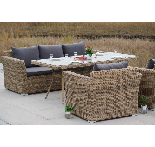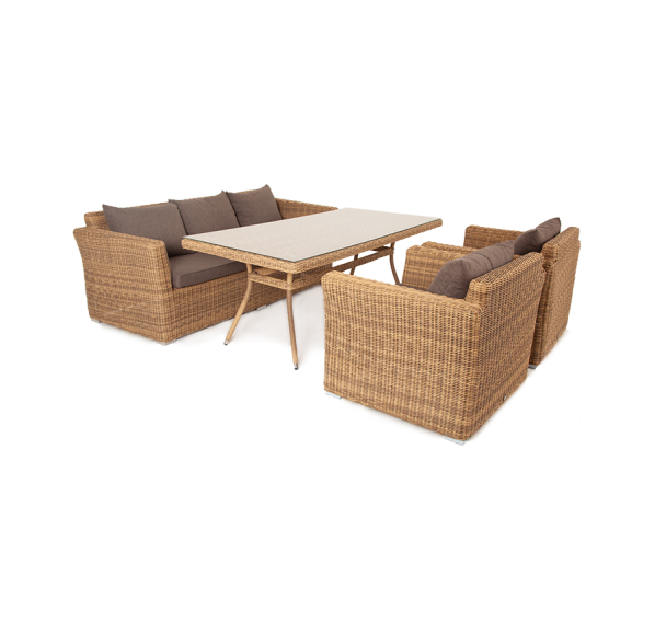 Обеденная группа «Моккачино» позволит оформить обеденную зону даже на открытом пространстве загородного участка.