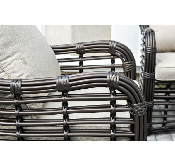 Модели имеют алюминиевый каркас, который оплетен вручную искусственным ротангом бронзового цвета.