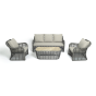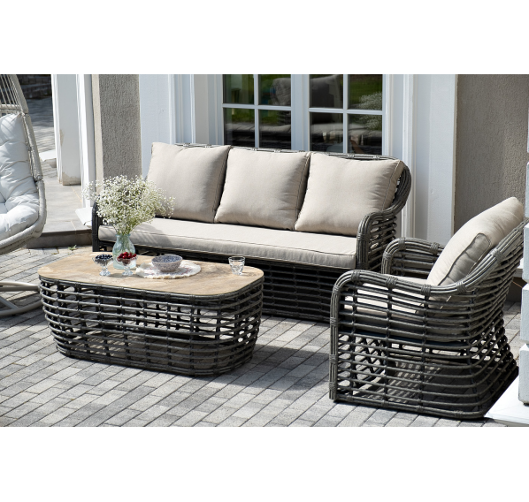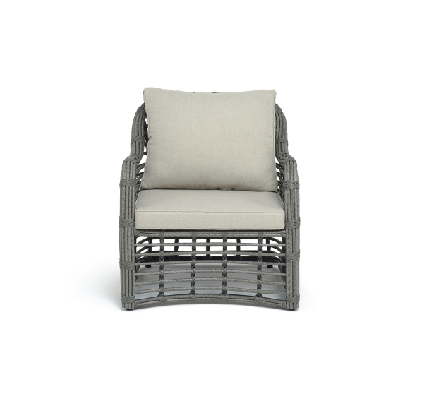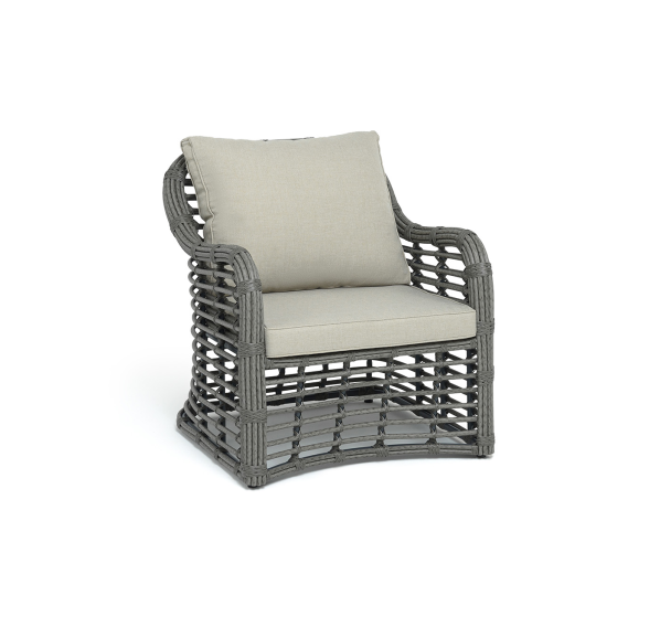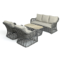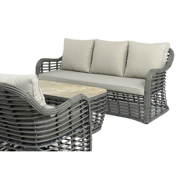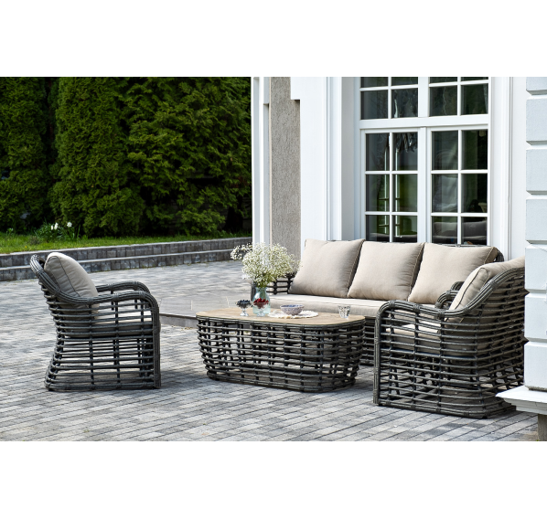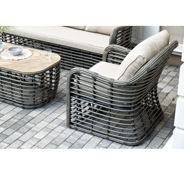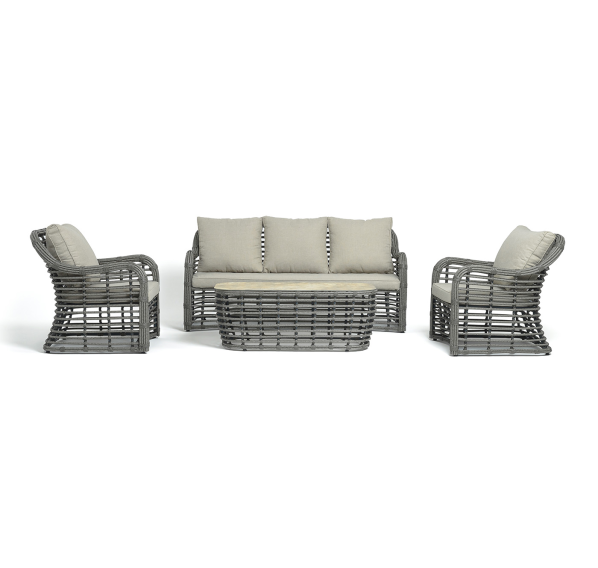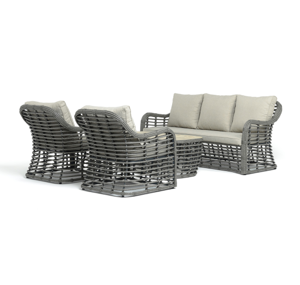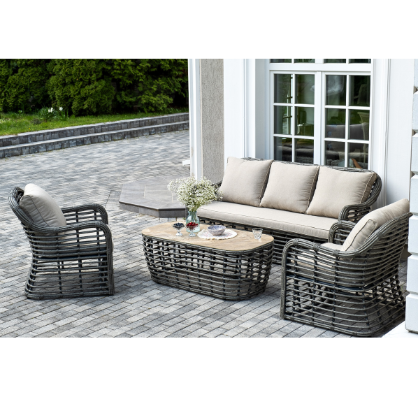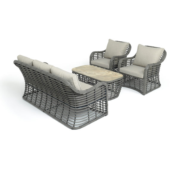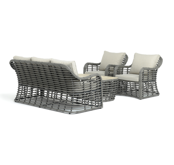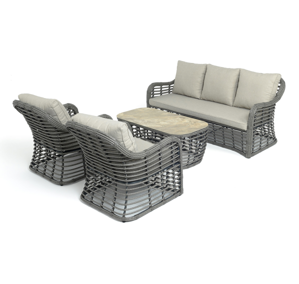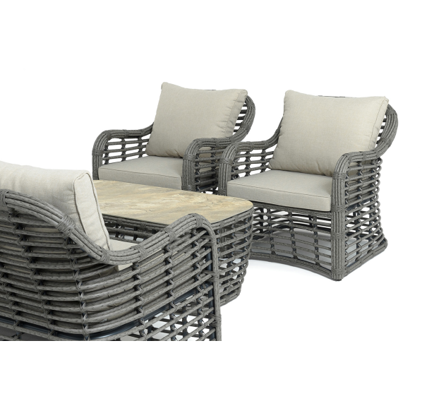 Модели имеют алюминиевый каркас, который оплетен вручную искусственным ротангом серого цвета.
