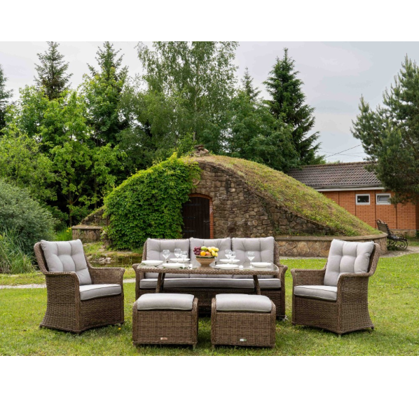 Материал комплекта — искусственный ротанг (ручного плетения)