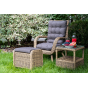 Кресло и пуф укомплектованы подушками со съёмными чехлами из влагостойкого 100%-го полиэстера.
