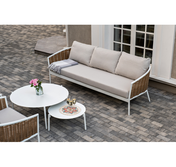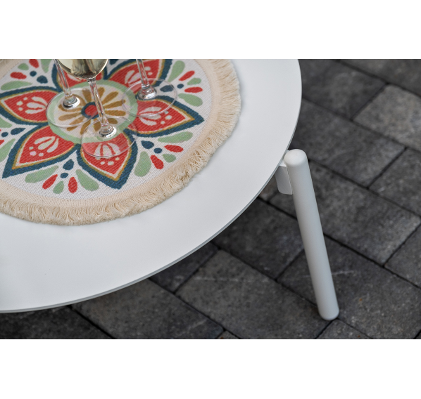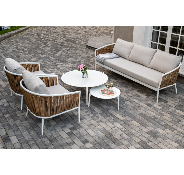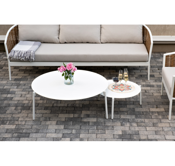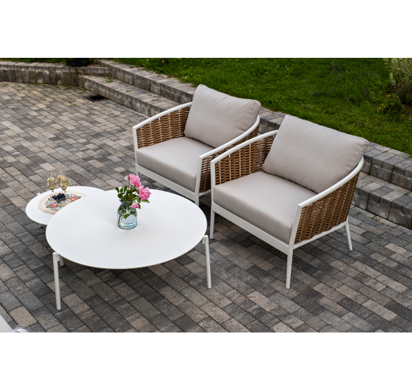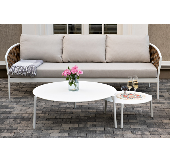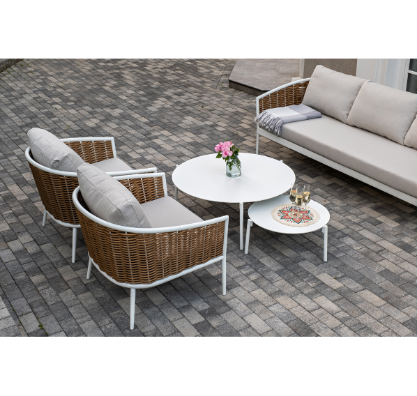 Журнальные столики выполнены из алюминия белого цвета.