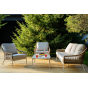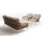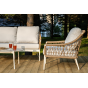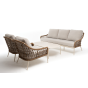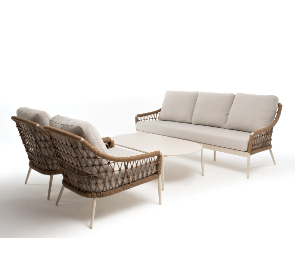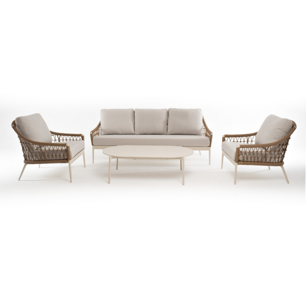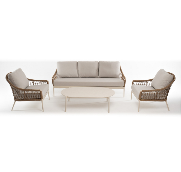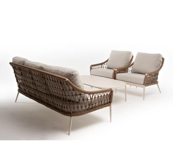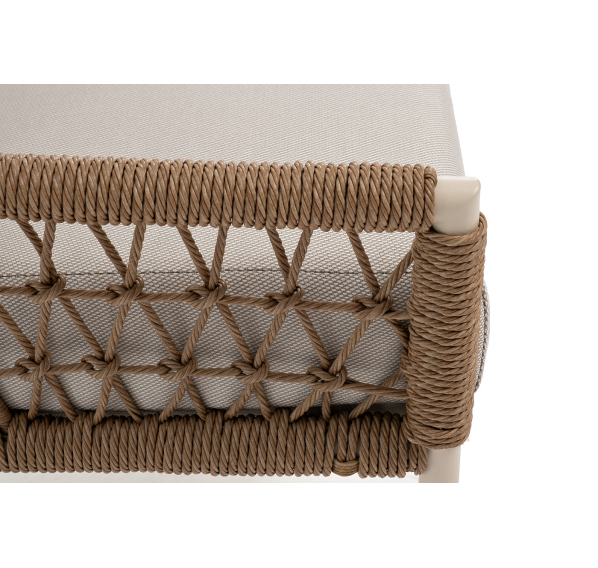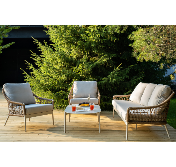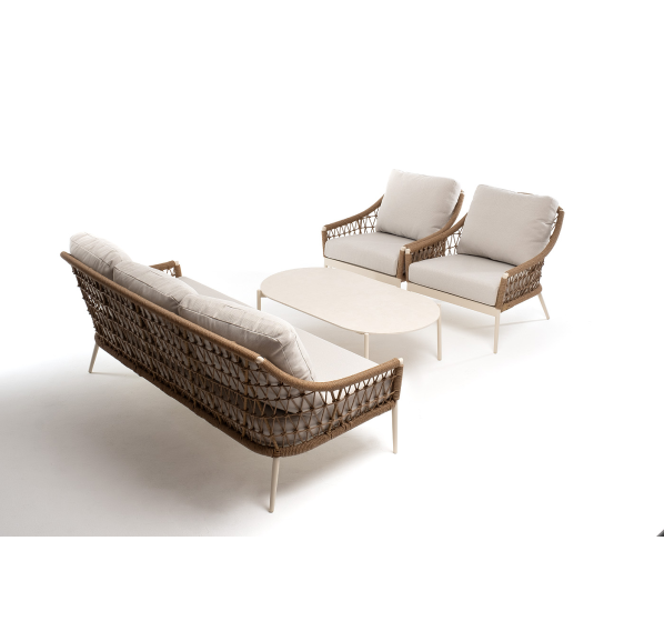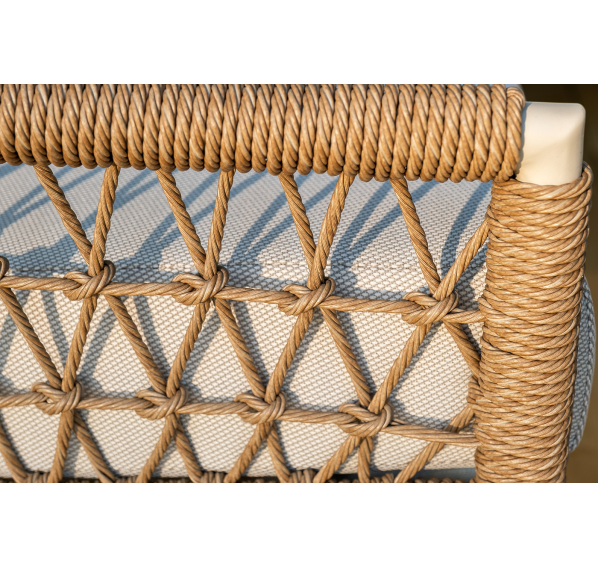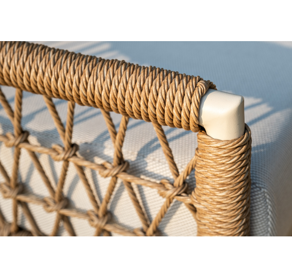 Модели имеют алюминиевый каркас, который оплетен вручную искусственным ротангом натурального соломенного цвета.