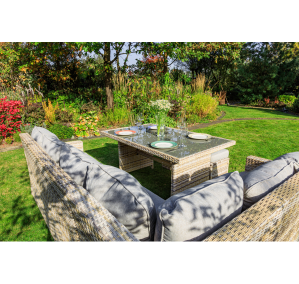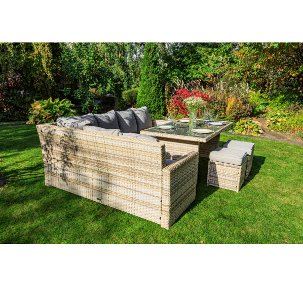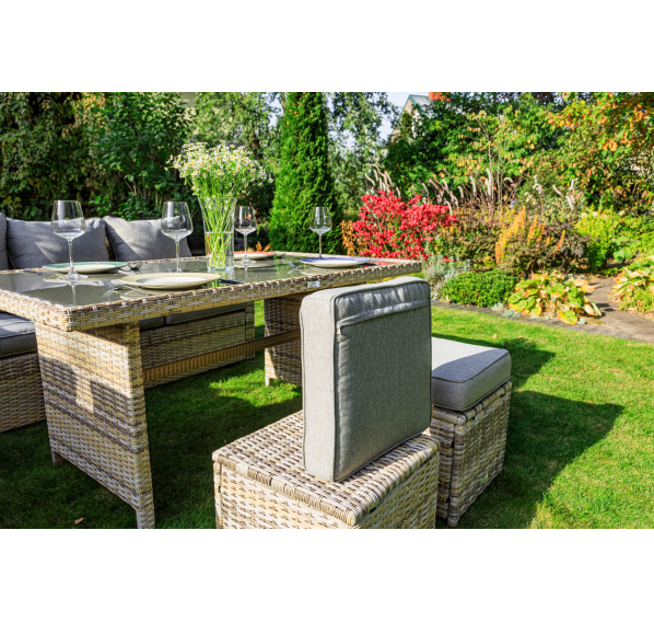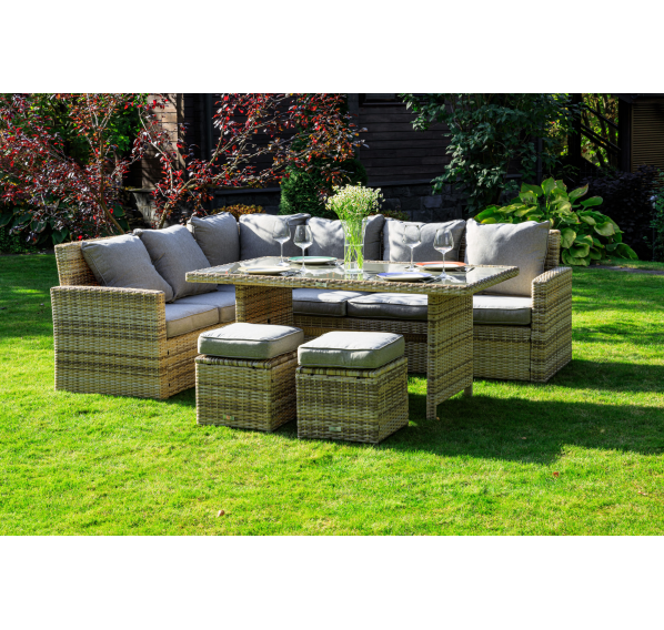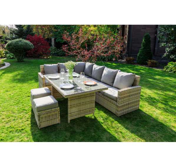 Создайте уютный и стильный уголок отдыха с угловым комплектом садовой мебели ZORRO, выполненным из искусственного ротанга в бежевом цвете. Этот набор станет идеальным решением для тех, кто предпочитает наслаждаться летними днями в тени приусадебного сада или на придомовой террасе. Он включает все необходимое для комфортного отдыха самой большой семьи.