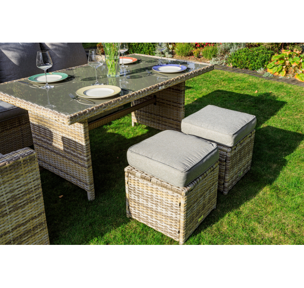 Такое разнообразие предметов позволит не только наслаждаться тихим семейным отдыхом или обедами, но и проводить веселое время в компании близких друзей. Изысканный бежевый оттенок техноротанга гармонично впишется в любое окружение, подчеркивая стиль и практичность набора мебели.