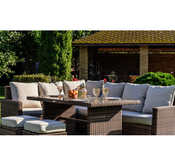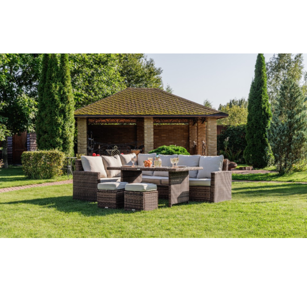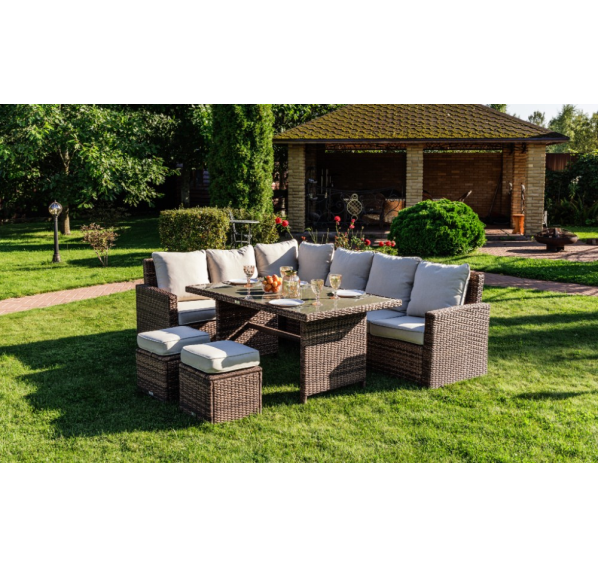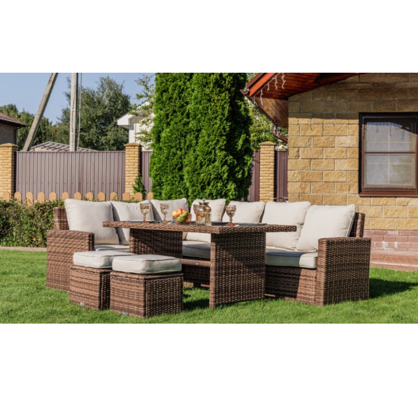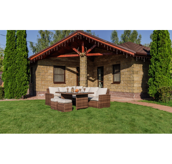 Выполненный в мягком коричневом оттенке комплект уличной мебели ZORRO – это все, что необходимо для полноценного досуга на территории приусадебного участка в теплое время года. Он отлично подойдет как любителям тихих семейных трапез, так и тем, кто предпочитает веселое времяпровождение в кругу близких людей. Габариты набора обеспечивают возможность его установки даже на средней по площади террасе.