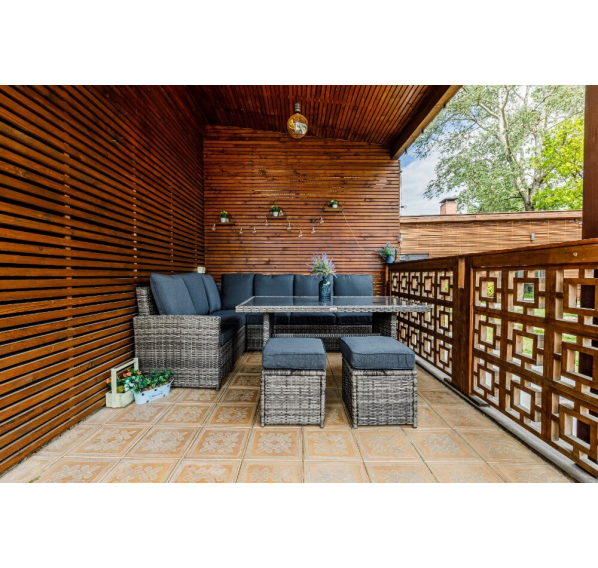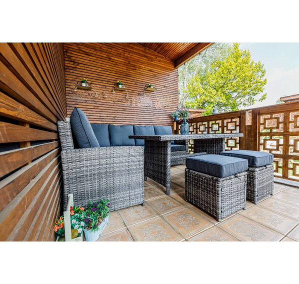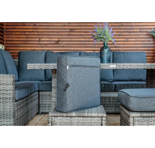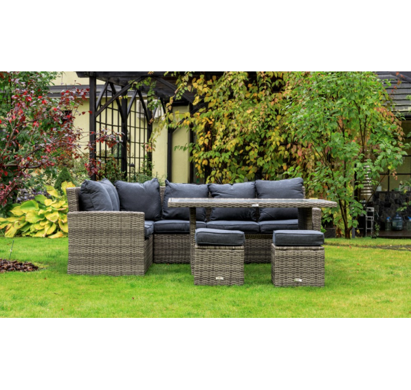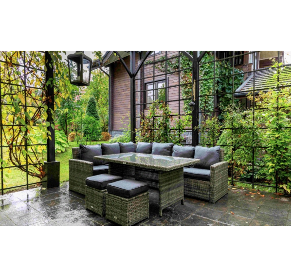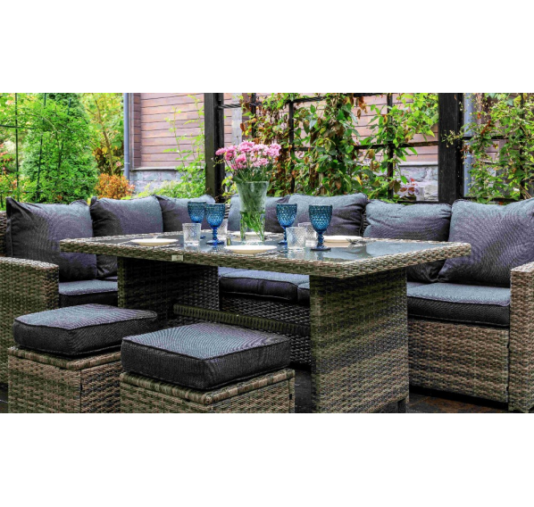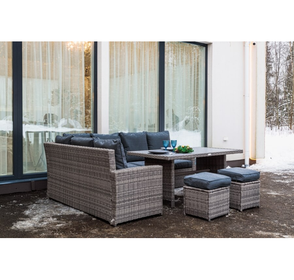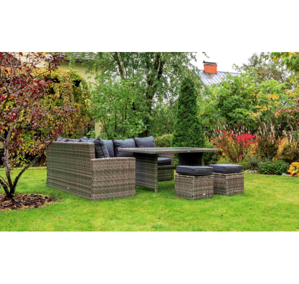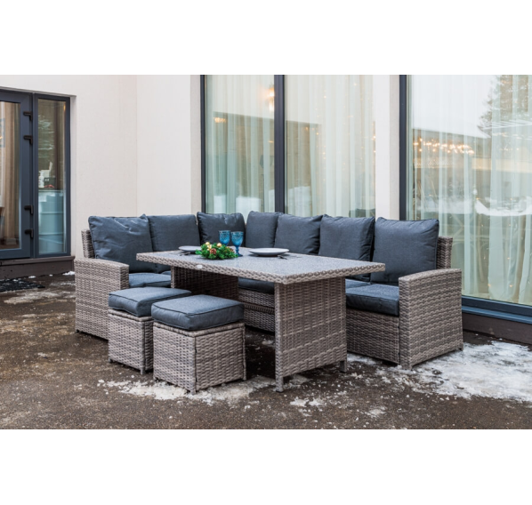 Угловой комплект садовой мебели из искусственного ротанга станет отличным решением для всех, кто отдает предпочтение летнему отдыху в тени приусадебного сада или на придомовой террасе. В набор входит все необходимое для организации полноценного уголка досуга даже для самой большой семьи.