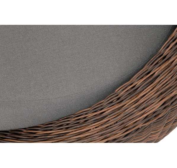 В комплекте с уличным ротанговым креслом идут мягкие подушки со съёмными чехлами серого оттенка. Они пошиты из полиэстера, который не боится повышенной влажности благодаря наличию влагоотталкивающей пропитки. Плотность ткани составляет 300гр/м2.