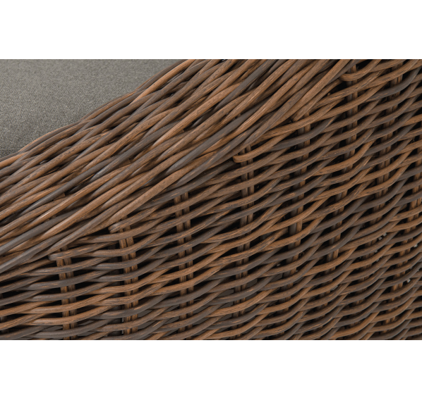 Надежность и износостойкость мебели гарантирует каркас, который сделан из качественного алюминия. Ее дополняет ручное плетение, при изготовлении которого используется искусственный ротанг. Представлена модель в коричневом цвете.