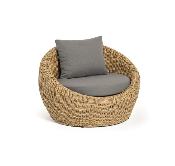 Кресло «Барселона» входит в комплект лаунж-зоны с плетеным диваном и журнальным столиком аналогичной серии. Так же его можно использовать, как самостоятельный элемент мебели.