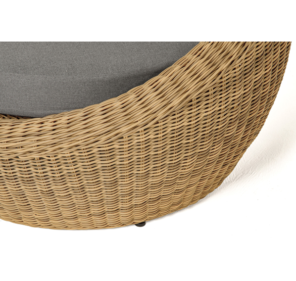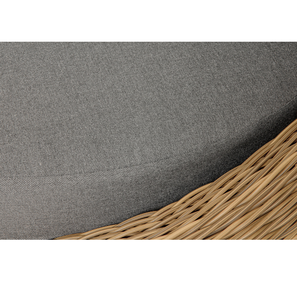 В комплекте с уличным ротанговым креслом идут мягкие подушки со съёмными чехлами серого оттенка. Они пошиты из полиэстера, который не боится повышенной влажности благодаря наличию влагоотталкивающей пропитки. Плотность ткани составляет 300гр/м2.