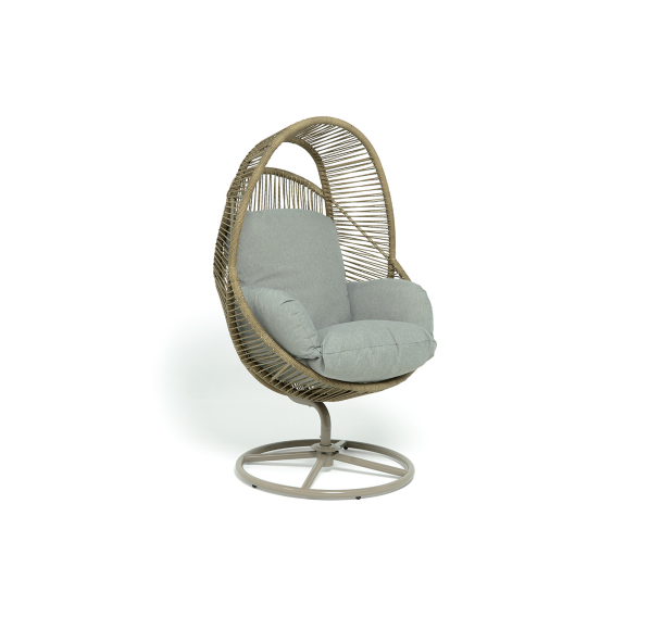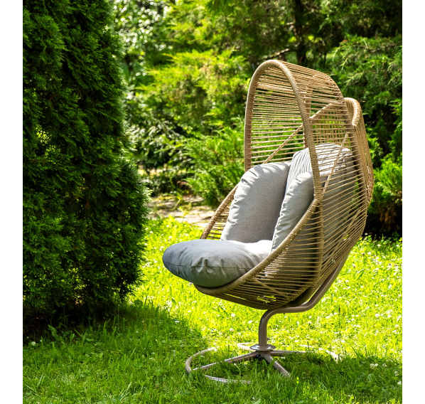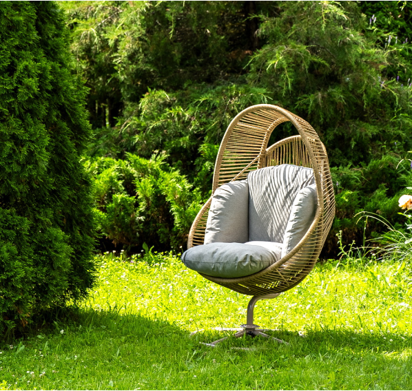 Подвесное плетеное кресло-кокон «Барселона» для организации зоны отдыха в саду, на террасе или летней площадке ресторана.