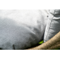 Для удобства сидения на кресле предусмотрена удлиненная подушка светло-серого цвета из полиэстера с влагоотталкивающей пропиткой. Чехол – съёмный, допускается стирать в стиральной машине с использованием порошка.