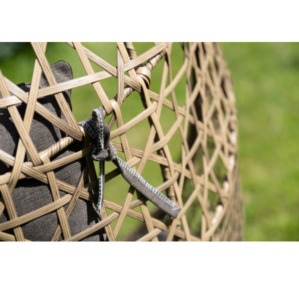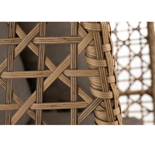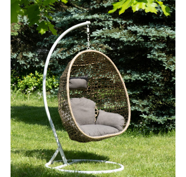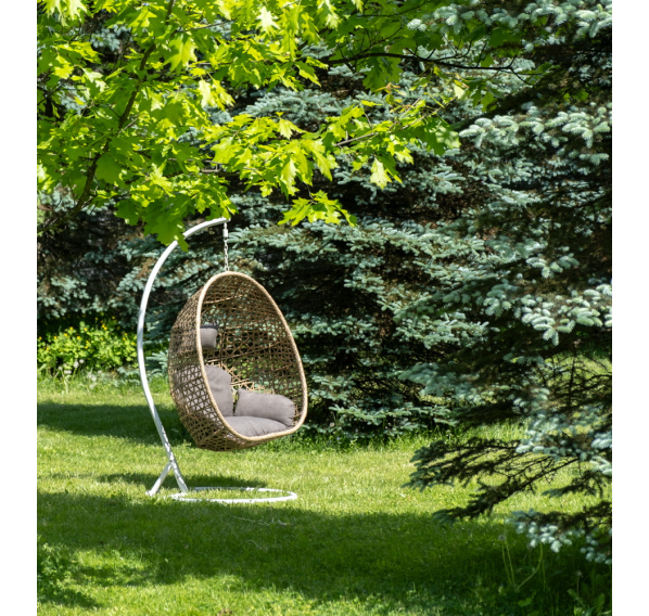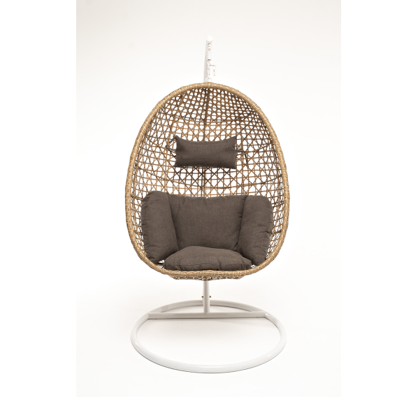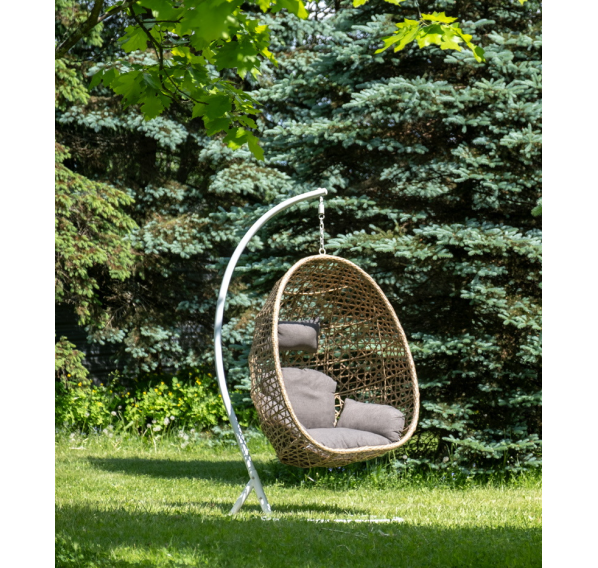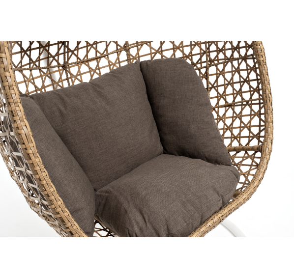 Уютное садовое кресло-кокон «Флоренция» для организации лаунж-зоны. Основание изготовлено из стали окрашенного порошковой износостойкой краской белого оттенка, вручную оплетенного плоским искусственным ротангом соломенного цвета. Этот материал не боится перепадов температуры, прямых солнечных лучей, дождя и ветра.
