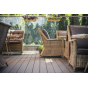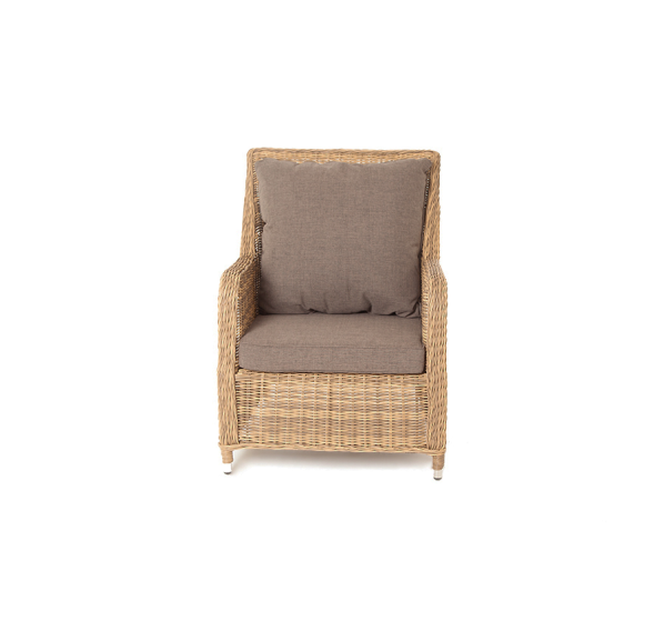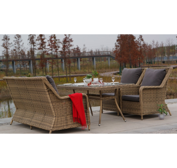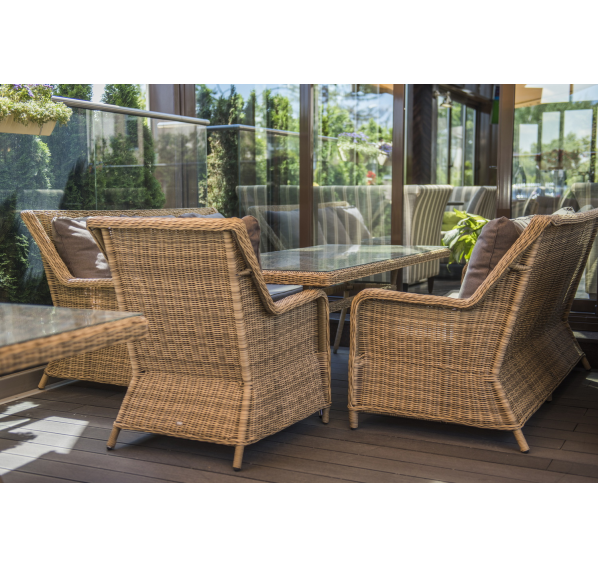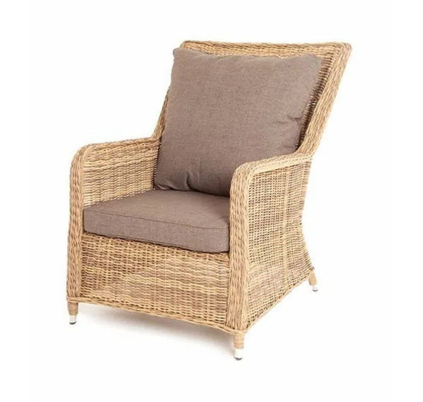 Каркас мебели сделан из прочного алюминия с высокими эксплуатационными качествами. Оплетен вручную с помощью круглого искусственного ротанга. Представлено в соломенном оттенке.