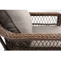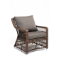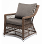 Кресло изготовлена из устойчивого алюминиевого каркаса. Искусственный ротанг украшает мебель в качестве круглого ручного плетения. Оно представлено в коричневом цвете.