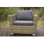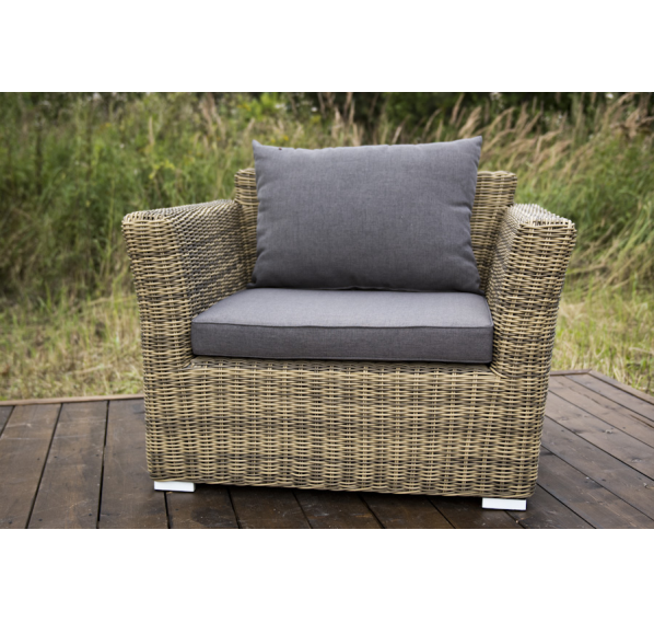 Две подушки серого цвета представлены в комплекте с садовым креслом. Изделия пошиты из полиэстера плотностью 300гр/м2. В обязательном порядке материал обрабатывается влагоотталкивающей пропиткой для усиления своих защитных свойств.