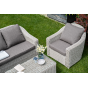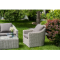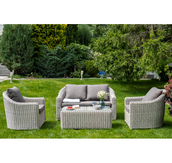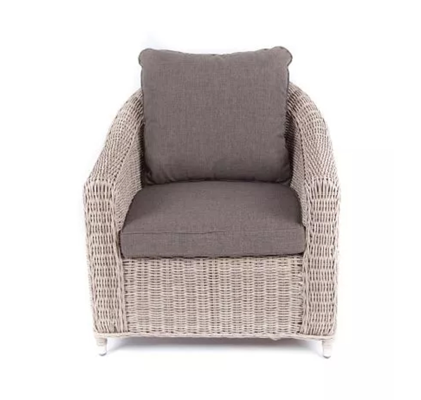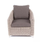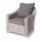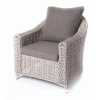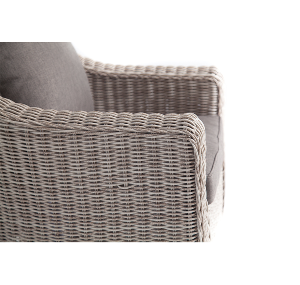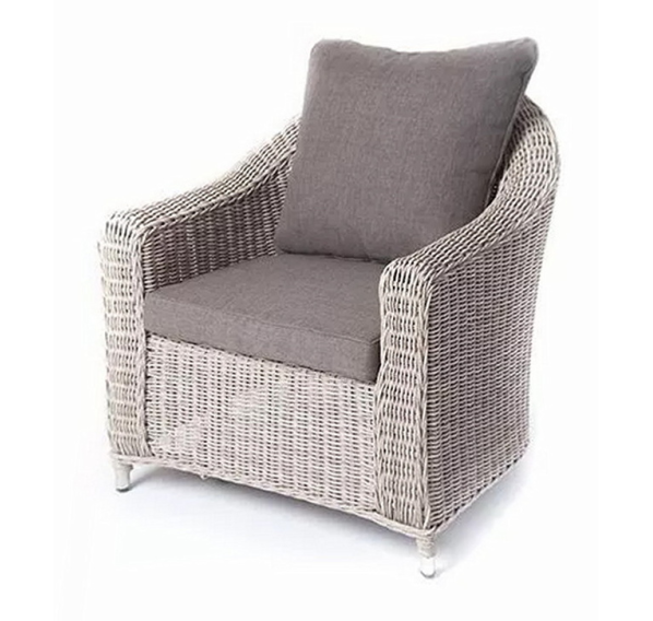 У кресла есть мягкие подушки, выполненые в сером цвете. Они сделаны из прочного полиэстера с плотностью 300гр/м2. Ткань имеет влагоотталкивающую пропитку, которая защищает ее от сильного намокания.