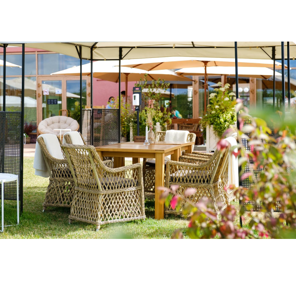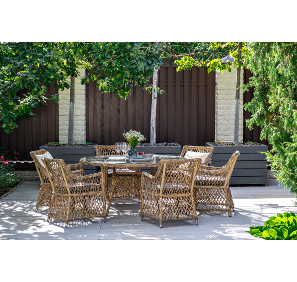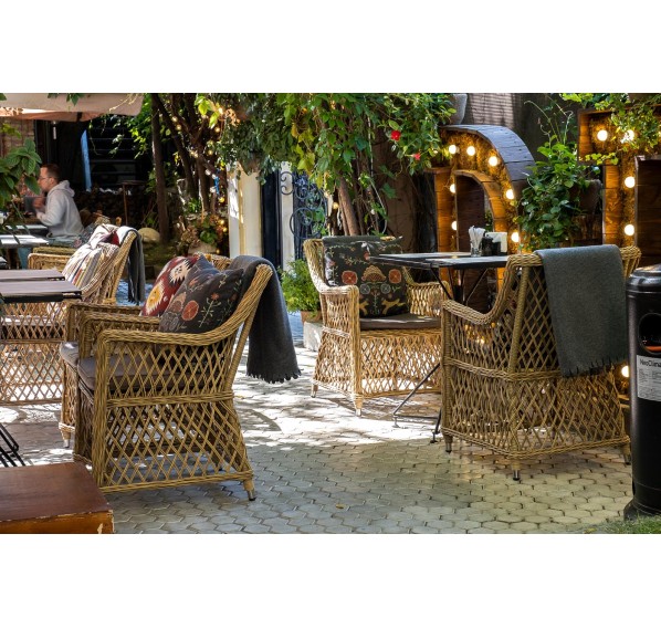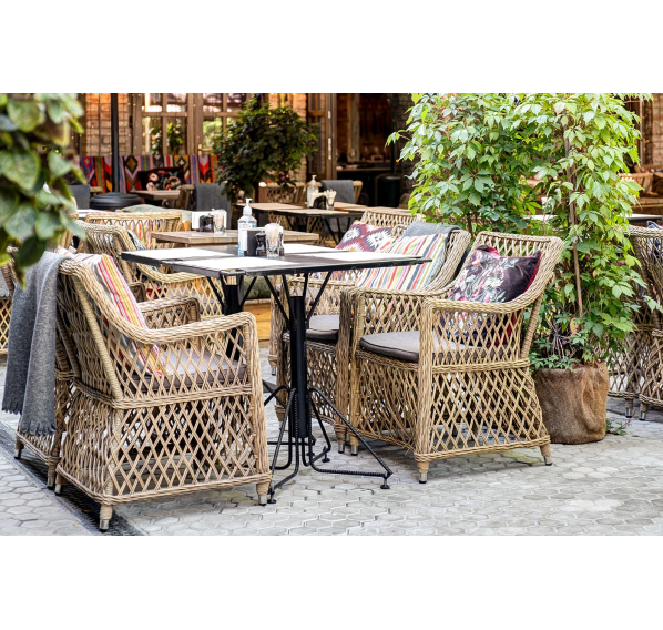 Кресло «Латте» изготовленное из искусственного ротанга - это идеальное решение для создания уютного уголка на свежем воздухе. Оно имеет размеры 550×660×850 мм и, благодаря своим компактным размерам, легко помещается на любой террасе или в саду.