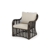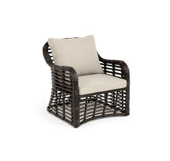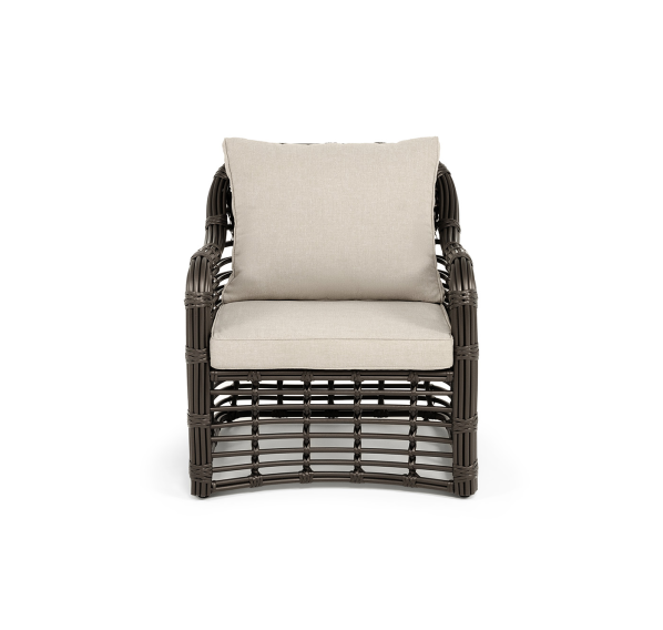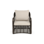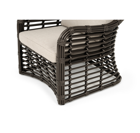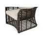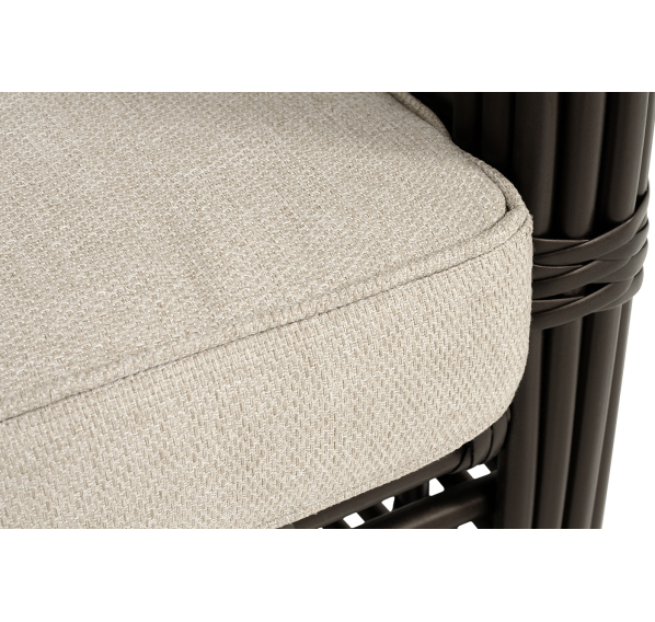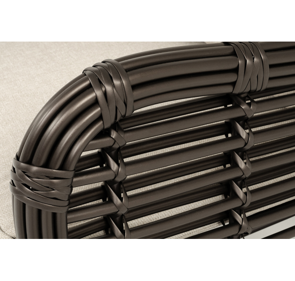 Каркас мебели сделан из прочного алюминия с высокими эксплуатационными качествами. Оплетен вручную с помощью круглого искусственного ротанга. Представлено в бронзовом оттенке.