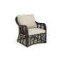 Садовое кресло укомплектовано удобными бежевыми подушками. Полиэстер используется при пошиве тканевых изделий, плотность которого - 300гр/м2. Материал имеет обязательную влагоотталкивающую пропитку для усиления его защитных свойств.