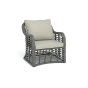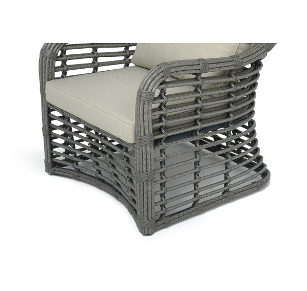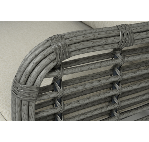 Каркас мебели сделан из прочного алюминия с высокими эксплуатационными качествами. Оплетен вручную с помощью круглого искусственного ротанга. Представлено в сером оттенке.