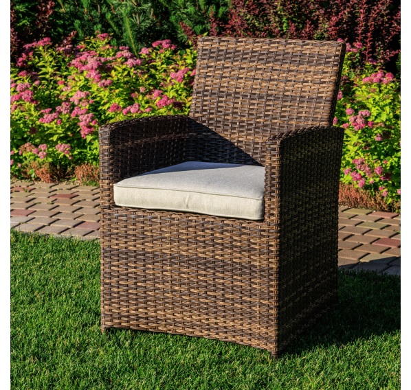 Обеденное кресло FIONA — станет идеальным решением в зоне отдыха, на садовом участке, в офисе или кафе! Благодаря современному дизайну и сдержанным коричневым оттенкам кресло прекрасно впишется в любой интерьер.
