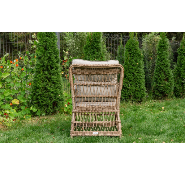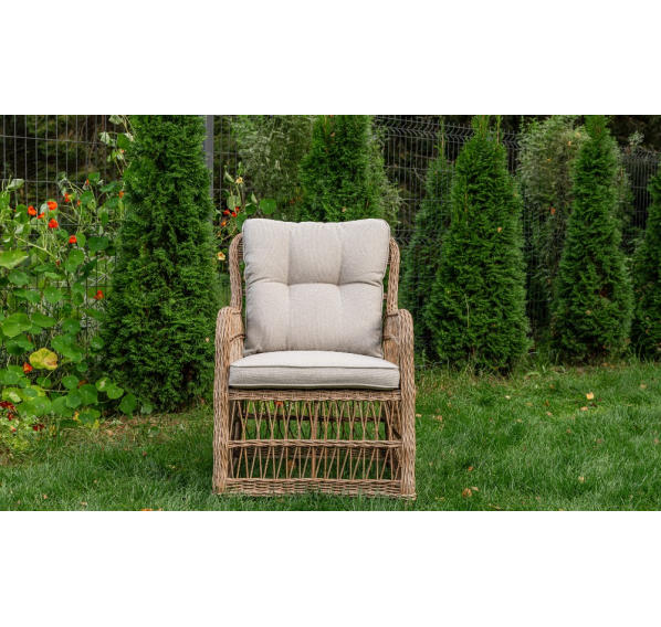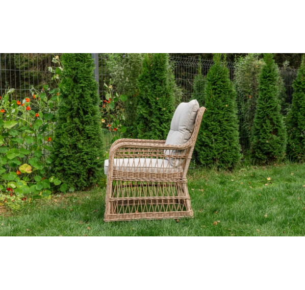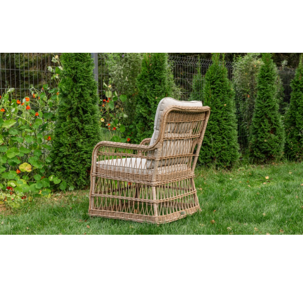 Каркас ISABELLA обшит искусственным ротангом круглого плетения диаметром 6 мм. Ротанг является популярным материалом для мебели из-за своей прочности, гибкости и устойчивости к воздействию погодных условий. Круглое плетение ротанга придает креслу элегантный и стильный внешний вид, а также обеспечивает комфортное сидение благодаря гибкости материала.