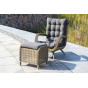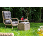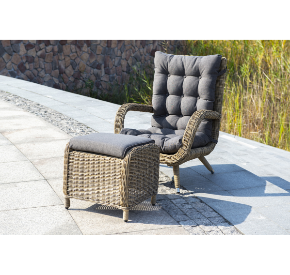 Садовое кресло дополнено мягкими подушками для комфортного размещения. Они выполнены в сером цвете. При их пошиве используется полиэстер с плотностью 300гр/м2. Влагоотталкивающая пропитка усиливает защитные свойства материала.