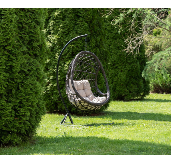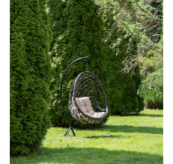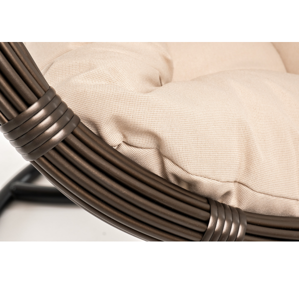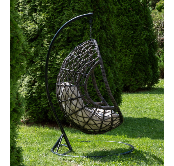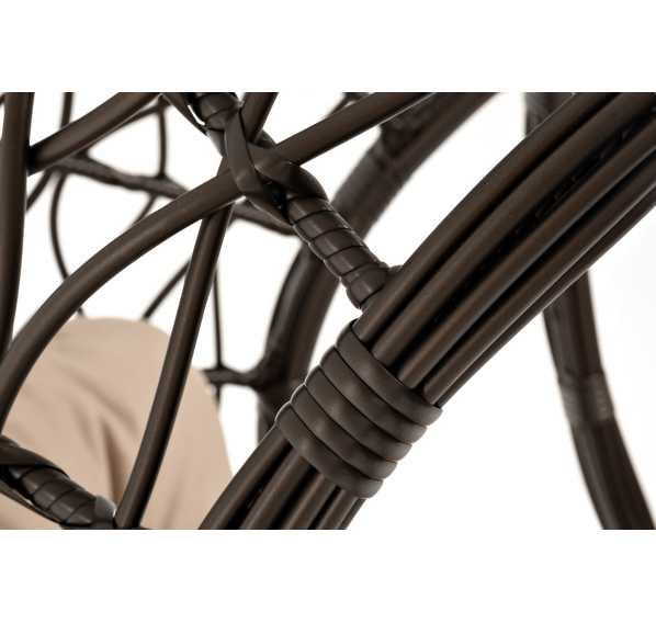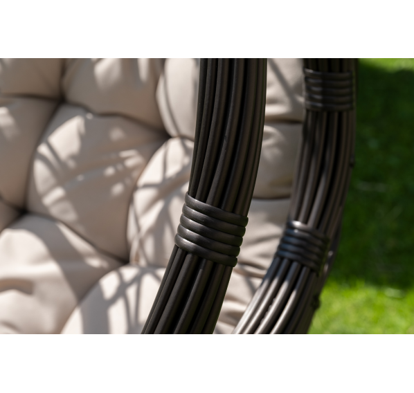 Уютное садовое кресло-кокон «Венеция» для организации лаунж-зоны. Основание изготовлено из стали окрашенного порошковой износостойкой краской черного оттенка, вручную оплетенного круглый искусственным ротангом бронзового цвета. Этот материал не боится перепадов температуры, прямых солнечных лучей, дождя и ветра.