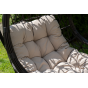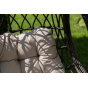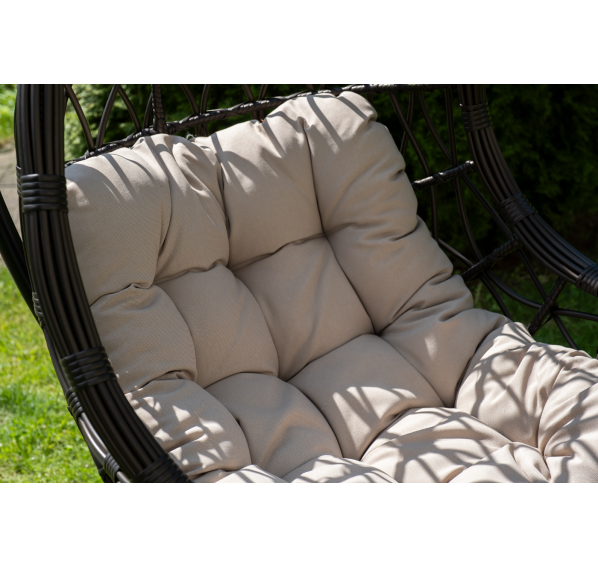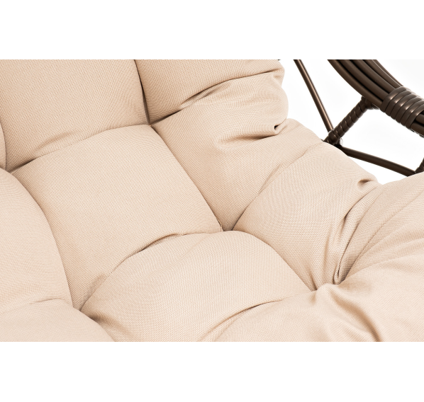 Для удобства сидения на кресле предусмотрена удлиненная подушка бежевого цвета из полиэстера с влагоотталкивающей пропиткой. Чехол – съемный, допускается стирать в стиральной машине с использованием порошка.