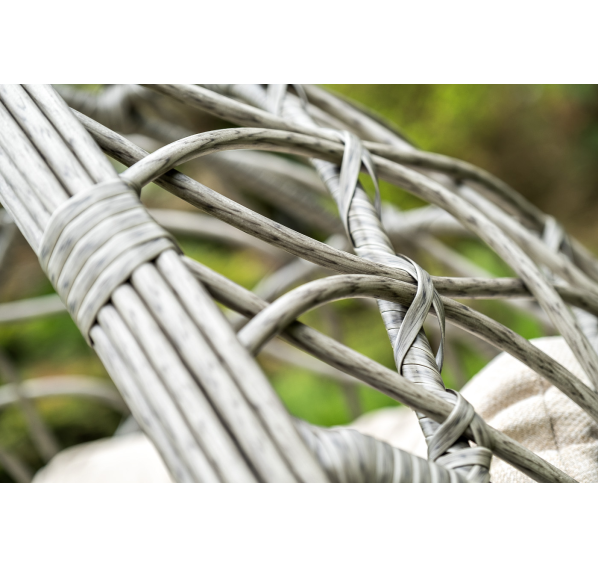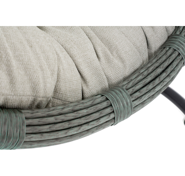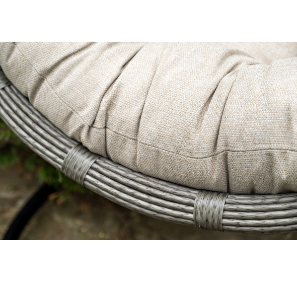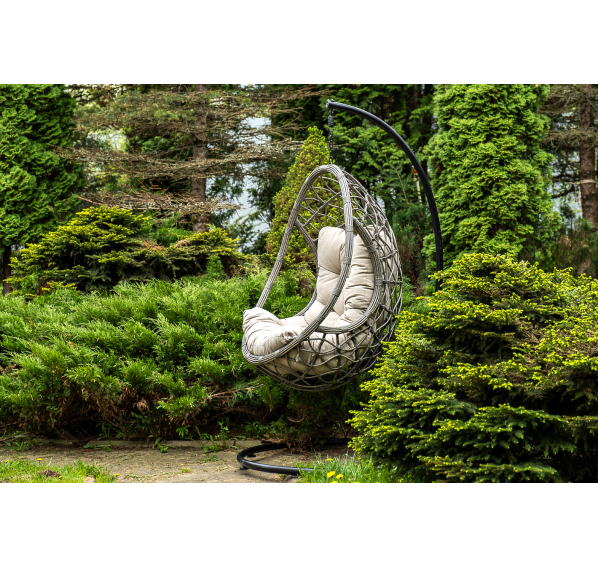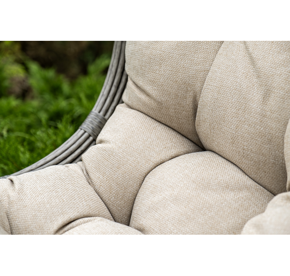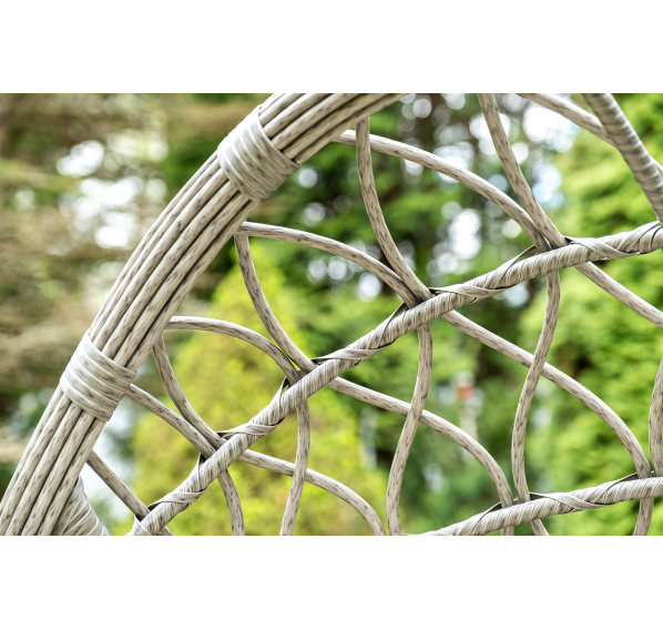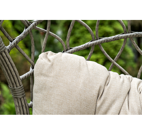 Уютное садовое кресло-кокон «Венеция» для организации лаунж-зоны. Основание изготовлено из стали окрашенного порошковой износостойкой краской черного оттенка, вручную оплетенного круглый искусственным ротангом серого цвета. Этот материал не боится перепадов температуры, прямых солнечных лучей, дождя и ветра.