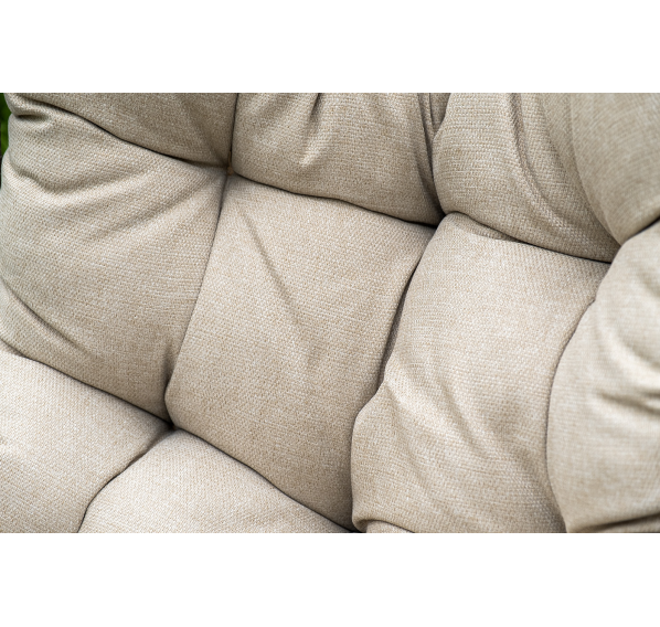 Для удобства сидения на кресле предусмотрена удлиненная подушка бежевого цвета из полиэстера с влагоотталкивающей пропиткой. Чехол – съёмный, допускается стирать в стиральной машине с использованием порошка.