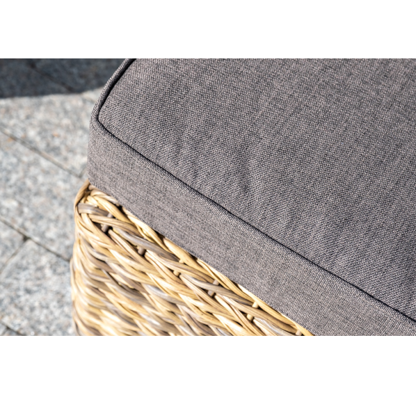 Предмет мебели дополняется мягкой подушкой в съёмном чехле серого цвета. При пошиве берется полиэстер с плотностью 300гр/м2. Предусмотрена влагоотталкивающая пропитка, которая защищает изделие от влаги.
