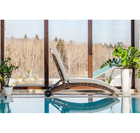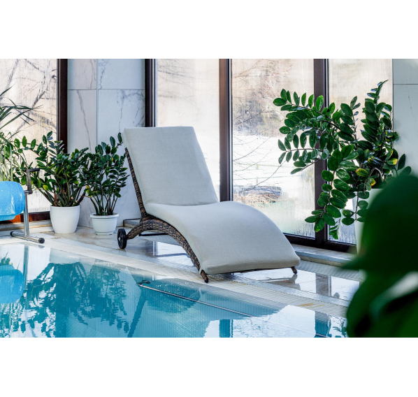 Отдыхайте с комфортом на шезлонге AGATA из искусственного ротанга коричневого цвета!