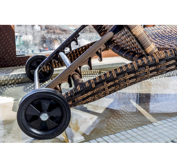 Колесики делают использование шезлонга еще более удобным и практичным.
