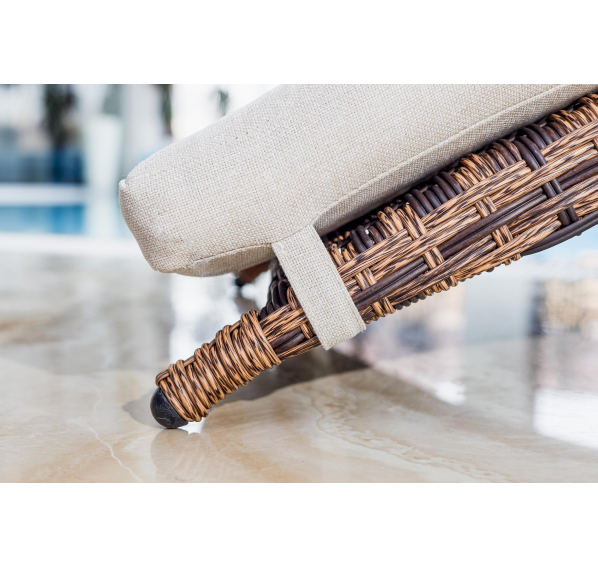 Изготовленный из первоклассного искусственного ротанга, с двойным полукруглым плетением и прочным стальным каркасом, шезлонг AGATA обеспечивает надежность и долговечность.
