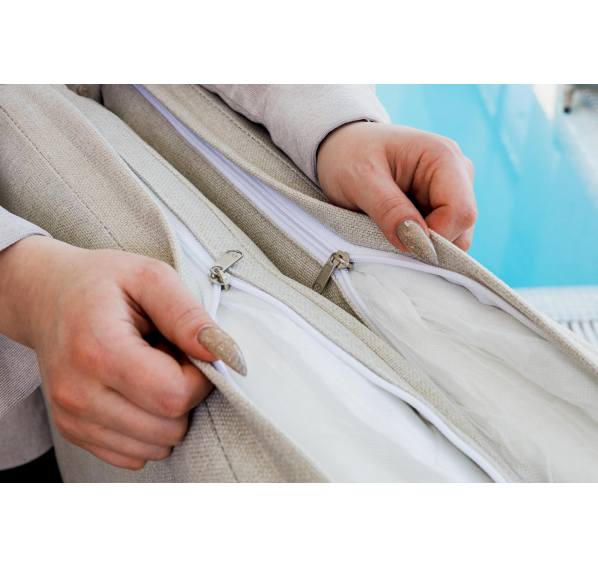 Съемные чехлы на подушки изготовлены из водоотталкивающего полиэстера, что обеспечивает дополнительную защиту от влаги.