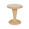 Каркас изготовлен из легкого алюминия и оплетен искусственным ротангом натурального соломенного оттенка. Поверхность столика дополнена стеклянной столешницей из закаленного стекла, толщиной 5 мм.