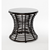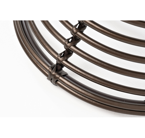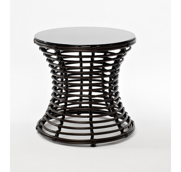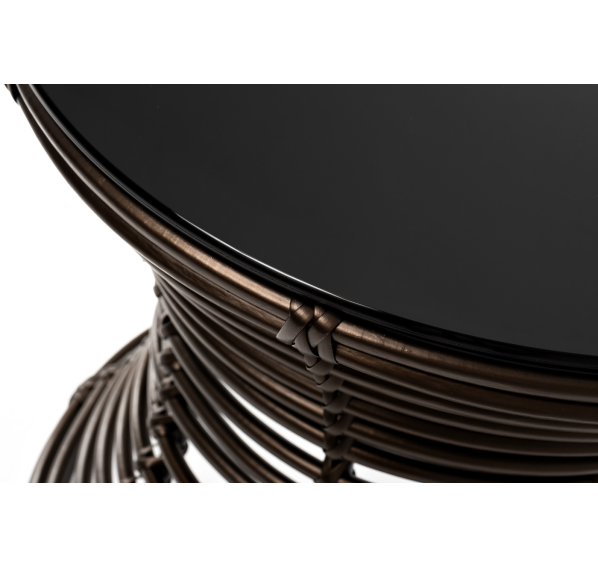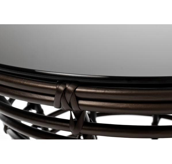 Каркас столика изготовлен из алюминия, вручную оплетенного круглым искусственным ротангом.