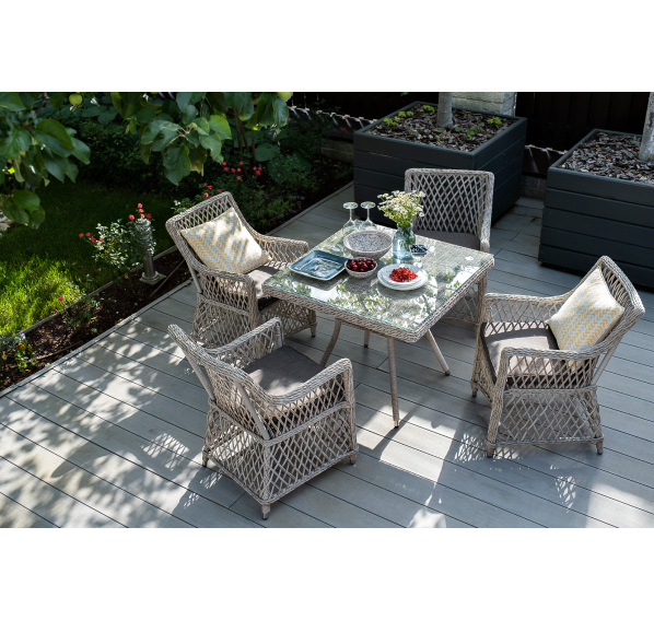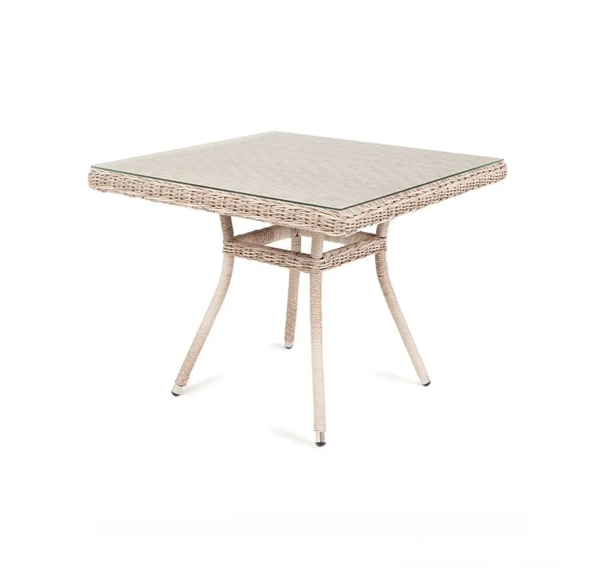 Плетеный стол для сада из искусственного ротанга «Айриш» бежевого цвета идеально вписывается в обеденное пространство на открытом воздухе.