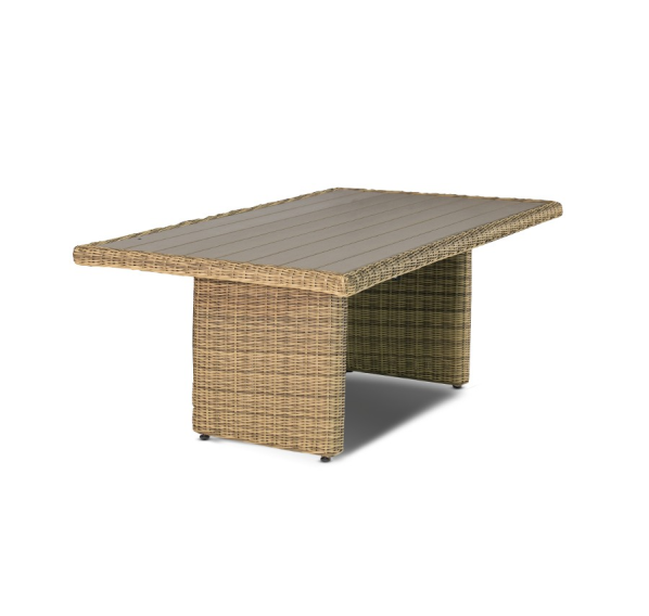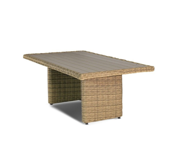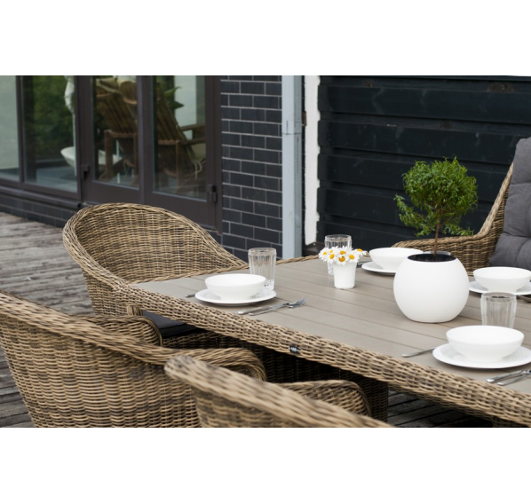 Столешница выполнена из современного полимерного материала ДПК в тон ротанга.