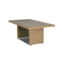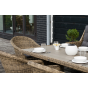 Каркас изготовлен из прочного и легкого металла – алюминия, вручную оплетенного искусственной ротанговой лозой натурального соломенного оттенка. Материал прекрасно подходит для использования на открытом воздухе благодаря устойчивости к прямым солнечным лучам и атмосферным осадкам.